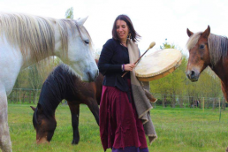 Avec ses trois compagnons équins, Luna, Desiré et Ozalée, elle propose des espaces de guérison du féminin, des moments de méditation, des rencontres individuelles » cheval miroir de mon âme »